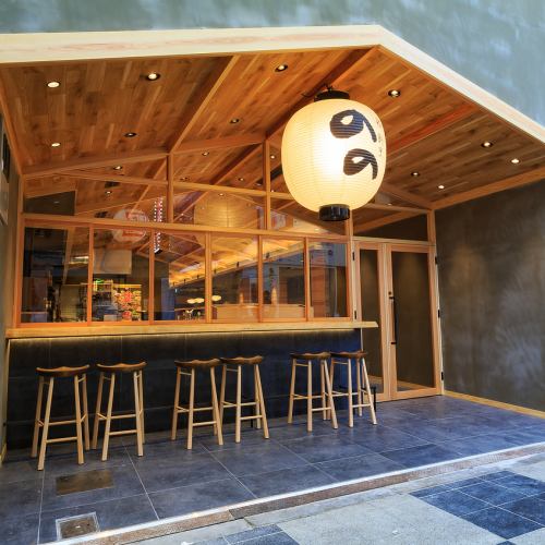 「のの」が書かれた大きい提灯が特徴。梅田お初天神でも最も明るい外観です。
